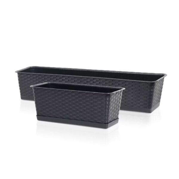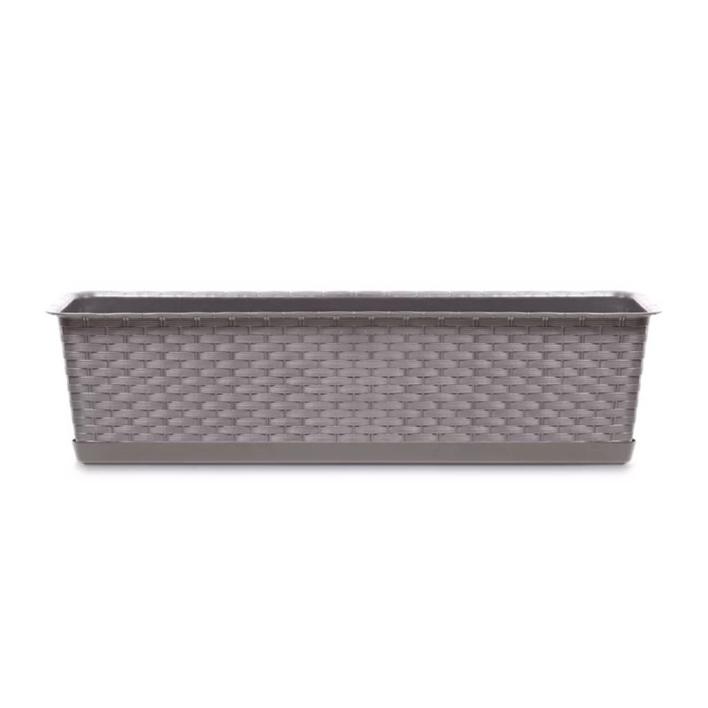 A rattan mintázat kifejezetten előnyös akkor, ha a klasszikus műanyag ládák helyett egy dekoratívabb felületet keresel. Letisztult összhatást ad, ezért jól illeszkedik modern és természetközeli teraszokhoz is. Ha több növényt tartasz egymás mellett, a rattan hatás vizuálisan egységesíti a kompozíciót, így szebb lesz az összkép, akár korláton, akár párkányon helyezed el.