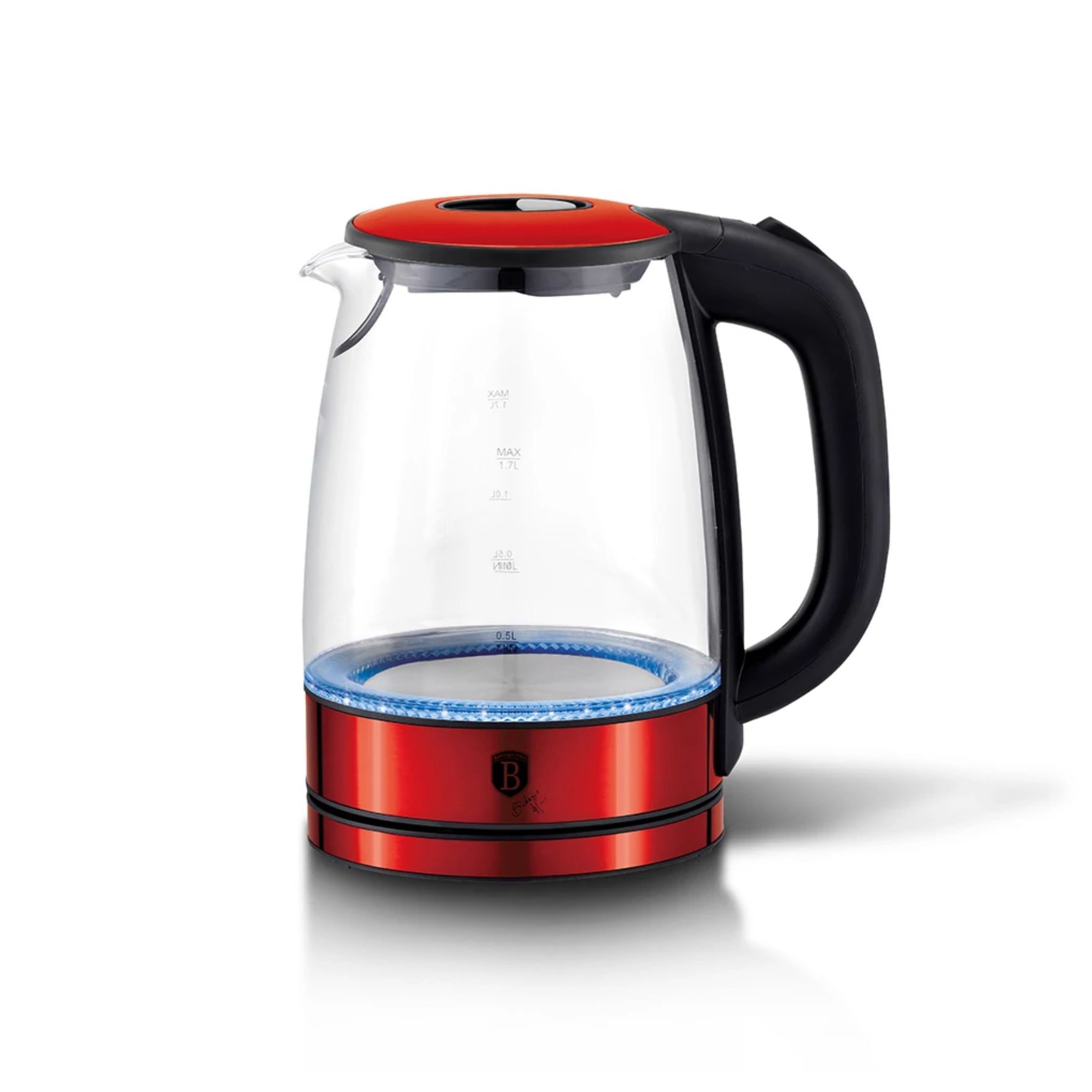 Elektromos üveg vízforraló 1,7 L – Berlinger Haus Metallic Line Burgundy Edition, 2200 W, rozsdamentes acél, LED világítással