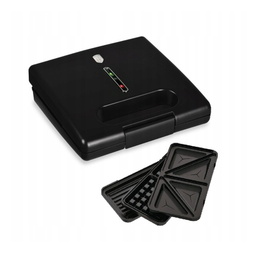 A Berlinger Haus Matte Black Collection 3 az 1-ben készüléke szendvicssütő, grillsütő és gofrisütő egyben. A cserélhető lapoknak köszönhetően egy mozdulattal válthatsz a reggeli gofri, a ropogós szendvics vagy a gyors grill között. A matt fekete, kompakt kivitel pultbarát, így nem kell elrejteni: egységesen illik a kollekció többi darabjához.