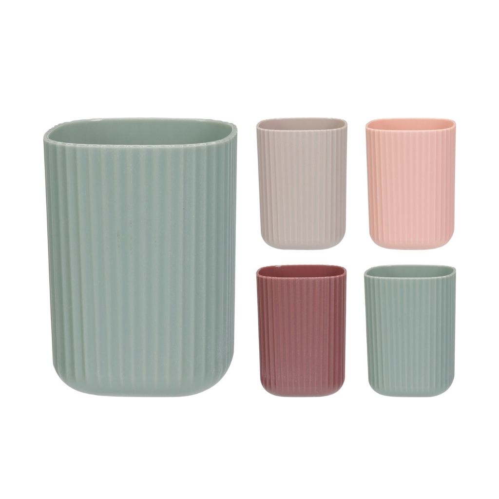 A bordázott fogmosópohár pasztell színekben praktikus és stílusos kiegészítője a mindennapi szájápolási rutinnak. A letisztult forma és a finom bordázott felület modern megjelenést biztosít, miközben a pasztell árnyalatok kellemes, harmonikus hangulatot teremtenek a fürdőszobában. Ideális választás, ha egyszerre fontos számodra a funkcionalitás és az esztétikus kialakítás.