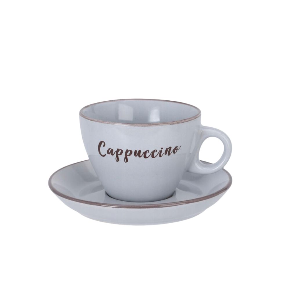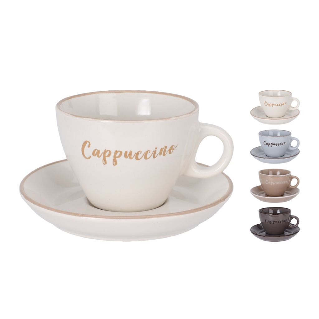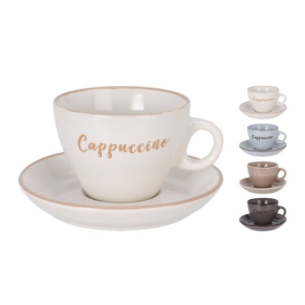 - Kőedény csésze és csészealj cappuccino mintával