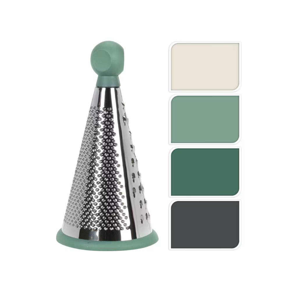 Ez a kúpos kialakítású kézi reszelő kiválóan alkalmas zöldségek, sajtok vagy akár csokoládé reszelésére. A rozsdamentes acél pengék tartós használatot biztosítanak, míg a szilikon talp stabil tartást ad reszelés közben. Ergonomikus fogója kényelmes és biztonságos fogást kínál.