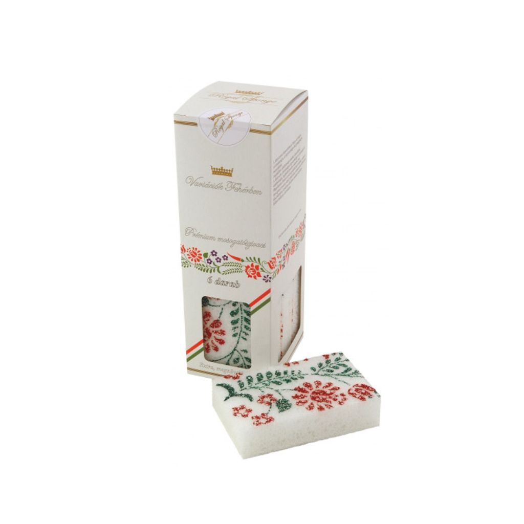 Hófehér, prémium minőségű szivacstesttel és dekoratív, népi motívumos díszítéssel készül; érzékeny felületeken is biztonságosan használható. A stílusos csomagolásnak köszönhetően ajándéknak is kitűnő.