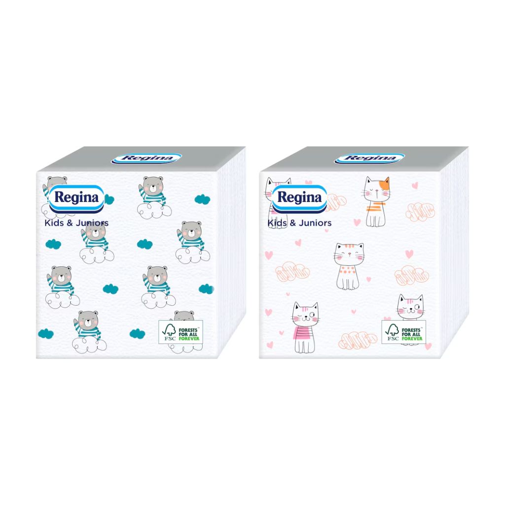 A Szalvéta, 45 db – Regina Kids vidám, gyerekbarát kiegészítő a mindennapi étkezésekhez: a maci és cica minták játékos hangulatot adnak az asztalnak, és sokszor segítenek abban is, hogy a gyerekek szívesebben üljenek le enni. Jó választás otthonra, óvodai uzsonnához, zsúrokra vagy szülinapi bulira, amikor egyszerre fontos a praktikum és a kedves megjelenés.