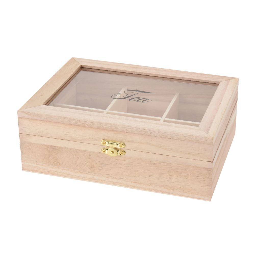 Rendezd ízlésesen a kedvenc teákat ezzel a teadoboz teafilterekhez készült, natúr fa tárolóval. A klasszikus vonalvezetésű doboz természetes, világos faerezetével bármely konyhába vagy irodai teakonyhába illeszkedik. A fedélen lévő átlátszó üveg betét „Tea” felirattal elegáns, és egyben praktikus: azonnal látod, melyik ízekből kell pótolni.