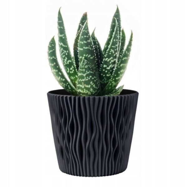 A Sandy round virágcserép betéttel, kőszürke modern, dekoratív megoldás beltérre és kültérre is. A finoman hullámzó, függőleges bordázott felület elegáns „kerámiahatást” ad, miközben a műanyag kivitel könnyen kezelhető és praktikus a mindennapokban. A kőszürke szín letisztult, természetes tónus, ezért jól illik modern, skandináv és indusztriális környezetbe is, és szépen kiemeli a növények zöldjét.